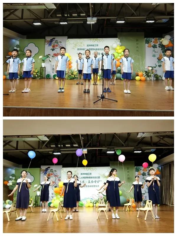 現(xiàn)場,由老師和孩子們共同表演的才藝展示拉開了結(jié)班儀式的序幕,舞蹈《愛的加減法》、非洲鼓《綠旋風(fēng)》、舞蹈《聽我說》、詩朗誦《白衣下的雙翼》等豐富多彩的節(jié)目,讓家長看到了這一個月里孩子們的成長與開心,贏得了陣陣掌聲。
