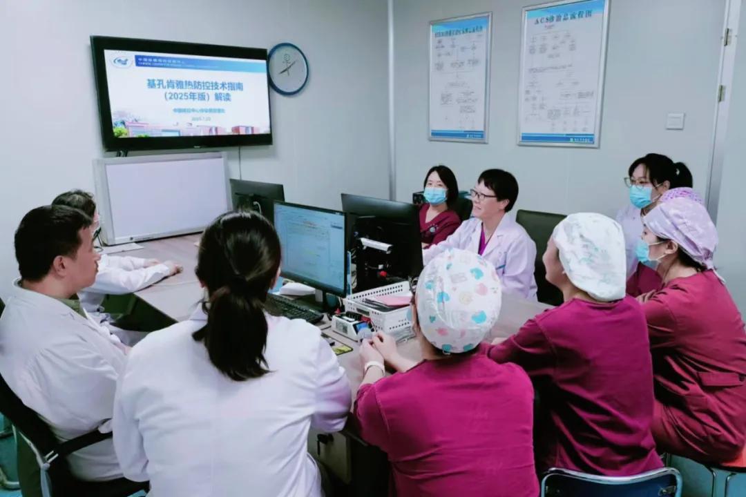 培訓會上,感染疾控科主任袁菲首先講解了基孔肯雅熱與登革熱診療知識,重點介紹其診斷依據、臨床表現(xiàn)、病史、實驗室檢查及治療原則,并針對二者異同展開對比分析;隨后詳細講解了基孔肯雅熱及登革熱相關防控知識及規(guī)范上報流程;最后針對防控策略,袁菲強調重點在于抓好“三個環(huán)節(jié)”:一是嚴格控制傳染源,疑似及確診病例需在24小時內規(guī)范報告,急性期病例防蚊隔離期不少于7天,確診病例原則上需住院治療;二是全力切斷傳播途徑,強化蚊帳、紗窗等防蚊設施配備,全面清理蚊蟲孳生地,降低蚊蟲密度;三是有效保護易感人群,加強健康宣教,做好日常防蚊滅蚊工作。