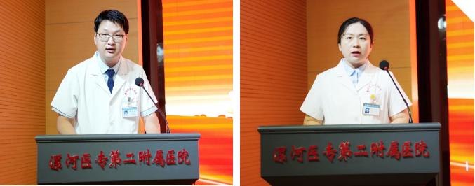 會上,創(chuàng)傷骨科二病區(qū)科吳大龍和急診醫(yī)學(xué)科王旭光兩位優(yōu)秀青年醫(yī)師代表分享了各自在臨床工作中的突出事跡和經(jīng)驗(yàn)。他們用真實(shí)的事例,生動地講解了工作中的點(diǎn)滴,分享了自己的從醫(yī)經(jīng)歷和感悟,表達(dá)了愛崗敬業(yè)、德業(yè)兼修、無私奉獻(xiàn)的個(gè)人信念,表示將始終用自己的實(shí)踐和付出來詮釋“健康所系、生命相托”的責(zé)任和信賴。優(yōu)秀醫(yī)師代表們真誠的講述令在場醫(yī)務(wù)人員深受感動,大家紛紛表示,將繼續(xù)努力,不斷提高醫(yī)療技能和服務(wù)水平,為人民群眾的健康事業(yè)繼續(xù)貢獻(xiàn)自己的力量。