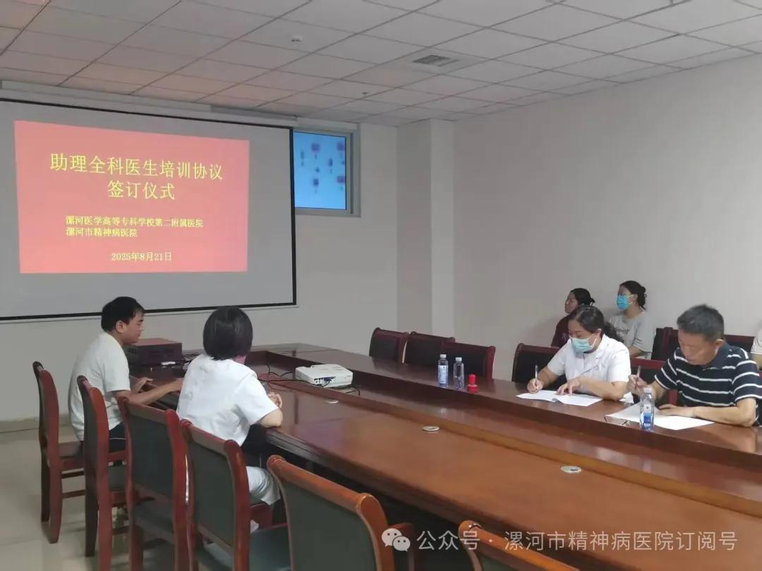 8月21日,漯河醫(yī)學(xué)高等專科學(xué)校第二附屬醫(yī)院劉國鋒書記及相關(guān)負(fù)責(zé)人帶領(lǐng)30余名助理全科醫(yī)生到漯河市精神病醫(yī)院開展參觀學(xué)習(xí)活動?,F(xiàn)場簽訂助理全科醫(yī)生培訓(xùn)合作協(xié)議,共同搭建理論與實踐相結(jié)合的學(xué)習(xí)平臺。