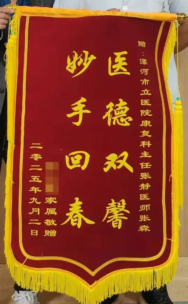 “醫(yī)德雙馨,妙手回春”——這面沉甸甸的錦旗,被患者鄭重地送到了漯河醫(yī)專二附院(漯河市骨科醫(yī)院、漯河市立醫(yī)院)康復(fù)醫(yī)學(xué)科張森醫(yī)生手中 ,這是患者對(duì)張醫(yī)生真摯的肯定,更是一段從絕望到重生的康復(fù)之路的見證。 一個(gè)半月前,患者因偏癱陷入困境:左側(cè)肢體完全活動(dòng)不利,神志不清、胡言譫語,溝通障礙,記憶功能受損,生活無法自理??祻?fù)醫(yī)學(xué)科團(tuán)隊(duì)立即制定個(gè)性化方案,中西醫(yī)結(jié)合開啟康復(fù)征程。