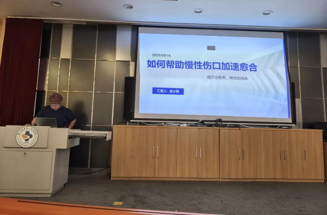隨后,壓力性損傷/傷口護理學(xué)組學(xué)術(shù)調(diào)研組長趙小艷老師圍繞《如何幫助慢性傷口加速愈合》展開授課。她深入探討慢性傷口愈合延遲的常見誘因,如局部血運、感染、營養(yǎng)不良等,進而系統(tǒng)闡述了個性化護理方案制定、傷口清創(chuàng)技巧、感染防控要點,以及通過優(yōu)化局部環(huán)境、結(jié)合物理治療等促進愈合的實用手段。豐富的內(nèi)容和實用的方法,為護理人員應(yīng)對慢性傷口難題提供了清晰思路與有效策略。