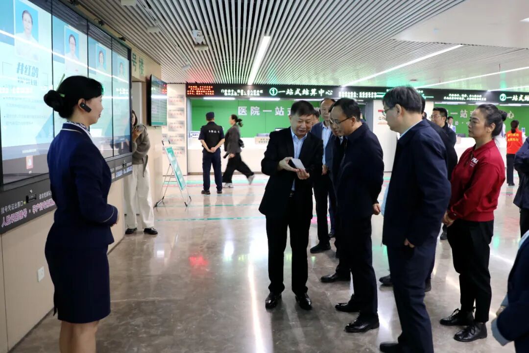 市人大趙耀嵩副主任一行首先聽取了市二院黨委書記魏松的工作匯報。魏松書記結合PPT內容,圖文并茂介紹了醫(yī)院在優(yōu)化服務流程、檢驗結果互認、方便群眾就醫(yī)、醫(yī)?;鸨O(jiān)管、投訴端關口前移等方面的主要做法,表示醫(yī)院自開展集中整治活動開展以來,通過一系列舉措,實現(xiàn)了患者就醫(yī)多項業(yè)務“一次到位”,價格公開、服務可查、投訴可追,醫(yī)院就診人次明顯上升,患者醫(yī)療費用、群眾投訴顯著下降,群眾滿意度大幅提升。同時,市人大視察組一行實地觀摩了病人一站式服務中心、醫(yī)保一站式結算中心和人臉識別掛號系統(tǒng)。隨后,視察組一行來到二樓內科門診,現(xiàn)場觀看了患者檢驗結果互認的操作流程。