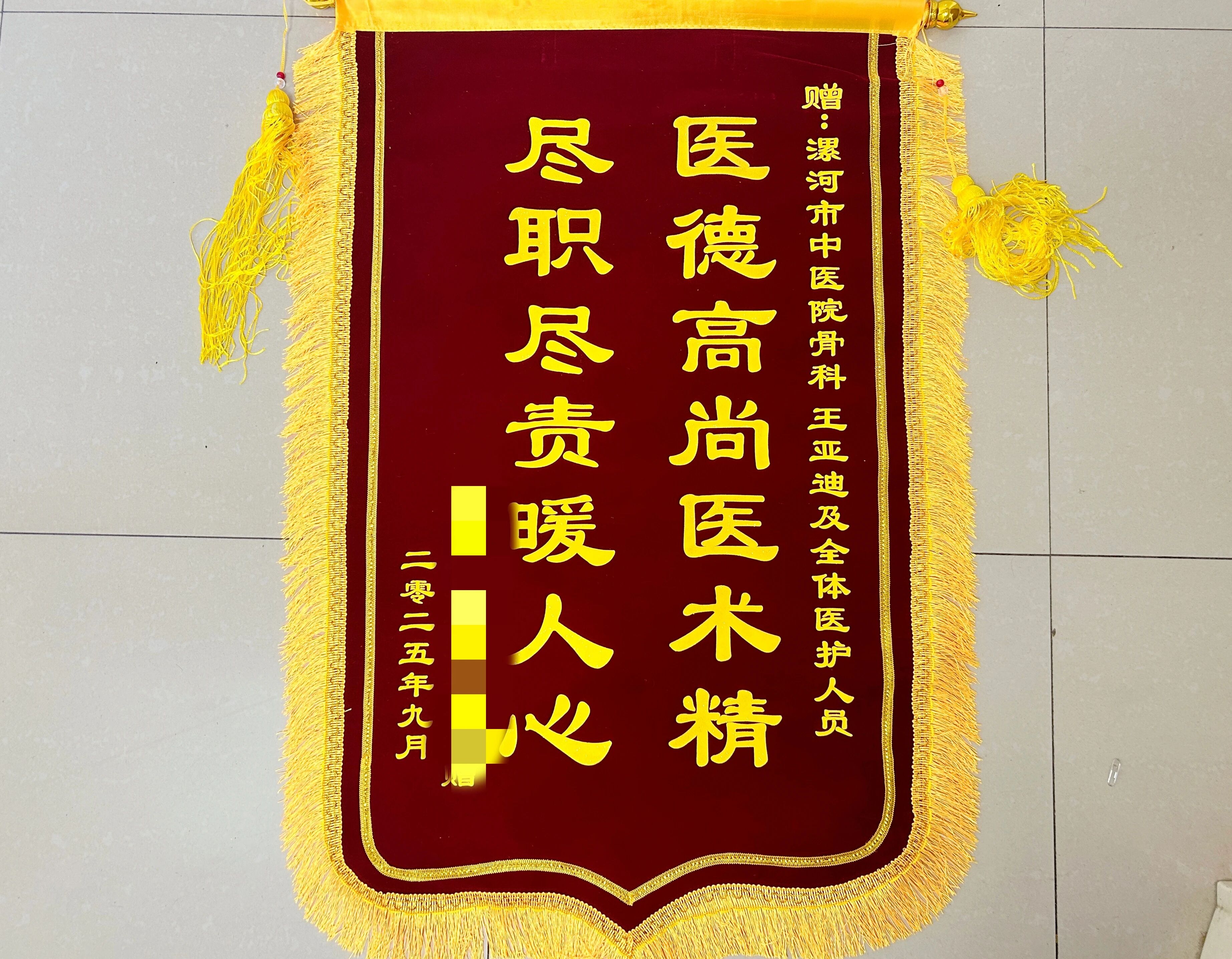 一周內(nèi),漯河市中醫(yī)院骨科接連收到三面錦旗,這不僅是對醫(yī)護人員專業(yè)技術的肯定,更飽含著醫(yī)患之間真摯的情誼。