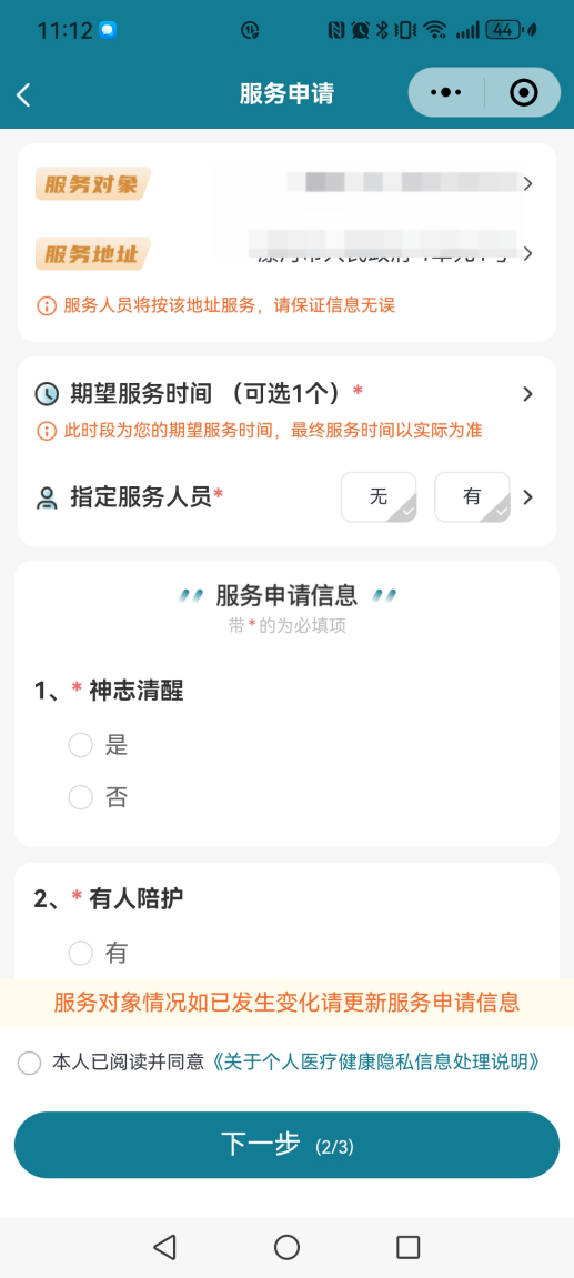 4、選擇預(yù)約時(shí)間,填寫服務(wù)申請(qǐng)信息