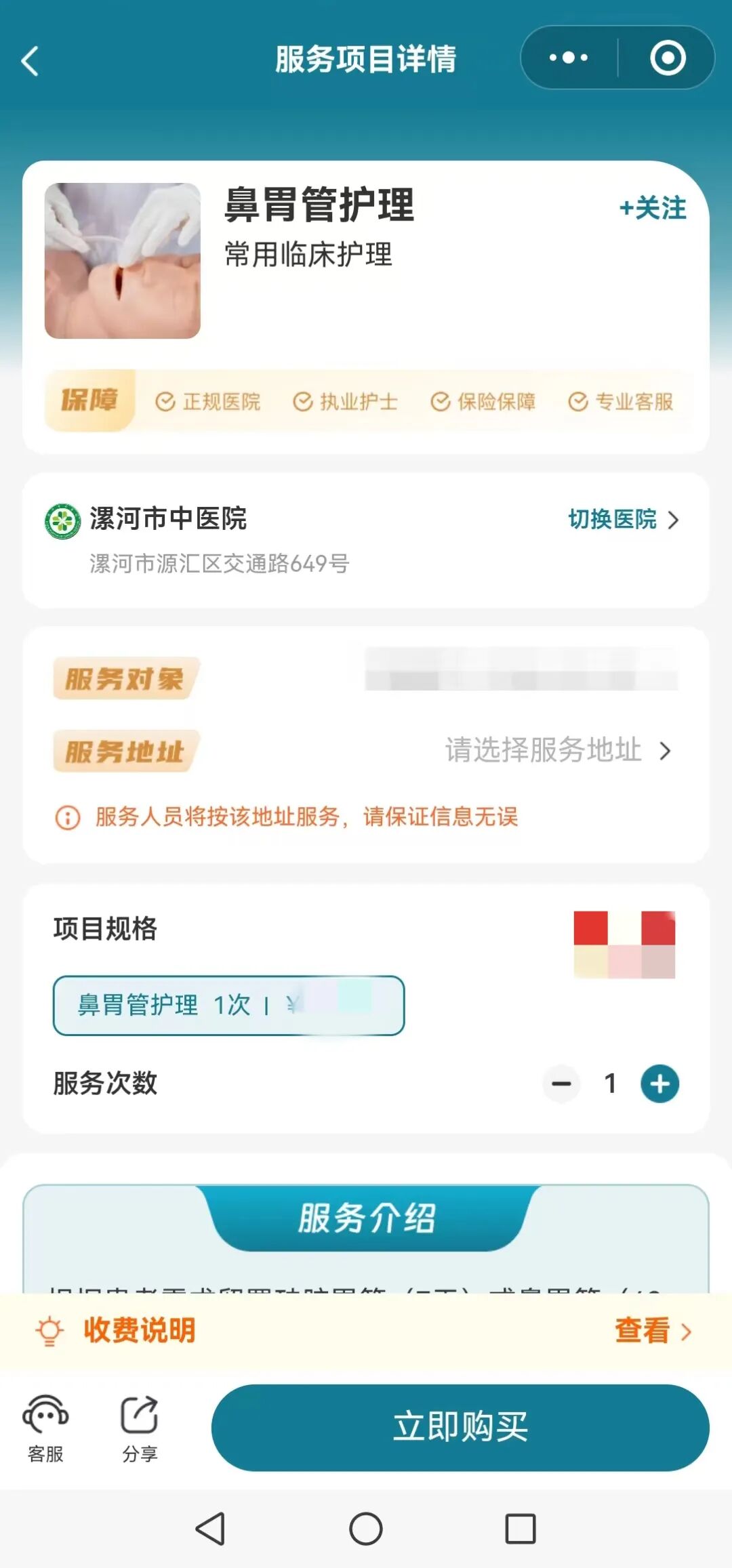 選擇服務(wù): 根據(jù)需求,在平臺上選擇所需的護(hù)理服務(wù)項目,如靜脈采血、更換胃管/尿管、PICC維護(hù)、壓瘡護(hù)理等。