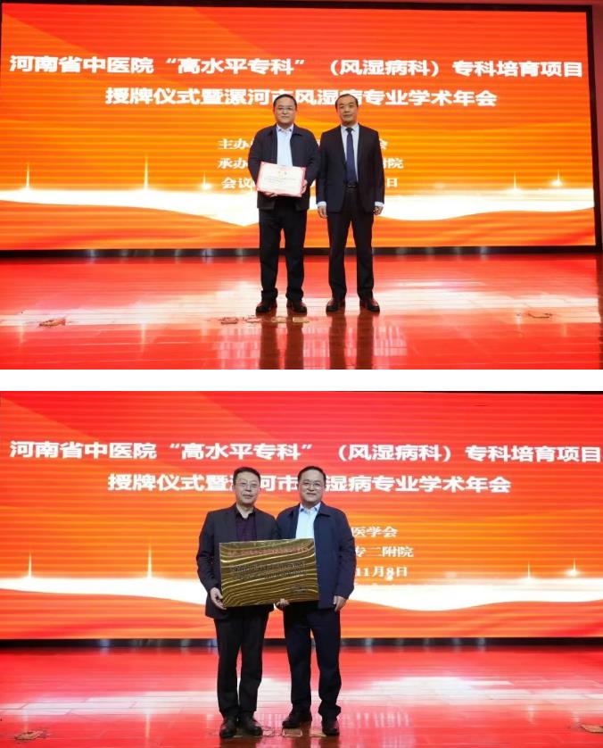 會上,王齊超院長代表漯河醫(yī)專二附院為孟慶良教授頒發(fā)特聘專家聘書。孟慶良教授代表河南省中醫(yī)院為漯河醫(yī)專二附院“高水平???rdquo;(風(fēng)濕病科)專科培育項(xiàng)目授牌。此次授牌搭建起河南省中醫(yī)院與漯河醫(yī)專二附院的專科共建橋梁,不僅將推動漯河地區(qū)風(fēng)濕病??频捏w系化發(fā)展,更有望通過中西醫(yī)結(jié)合診療模式的深化,為我市風(fēng)濕病患者帶來更優(yōu)質(zhì)、便捷的醫(yī)療資源。