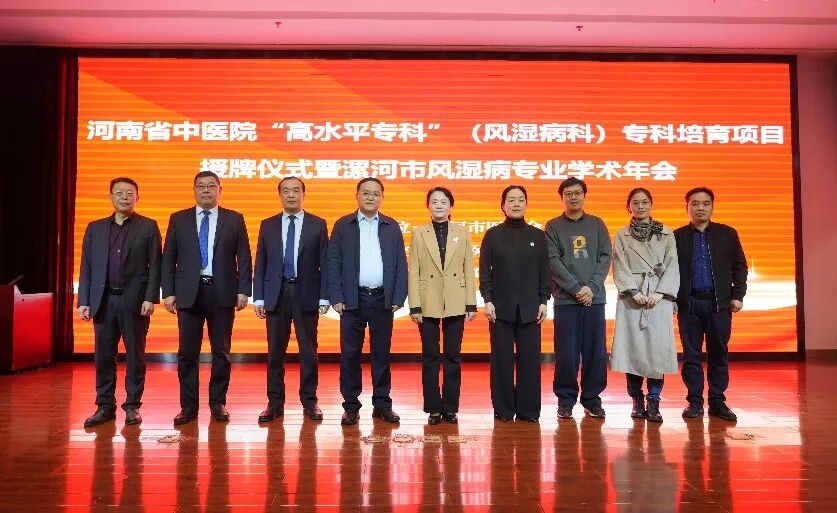 河南省中醫(yī)院風(fēng)濕科主任孟慶良教授、漯河市衛(wèi)健委副主任于宏、漯河市醫(yī)學(xué)會秘書長花云,漯河醫(yī)專二附院院長王齊超、副院長吳廣良、紀(jì)委書記劉國鋒等出席會議。