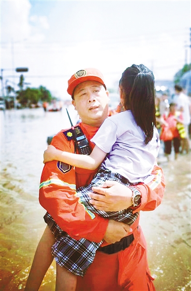 2021年,信天游在新鄉(xiāng)抗洪救災(zāi),救助受困孩子。受訪者供圖