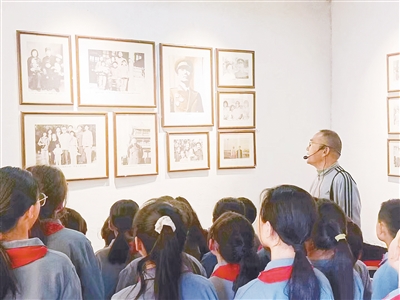蘇紅軍為參觀蘇進(jìn)故居的孩子們講解。
