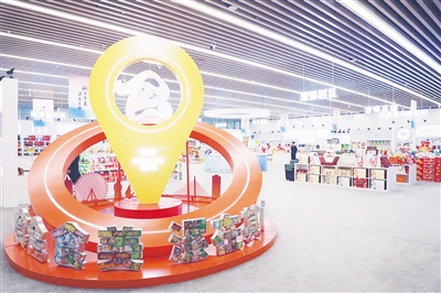 中國食品名城品牌館食品展廳,本地休閑食品整齊陳列。