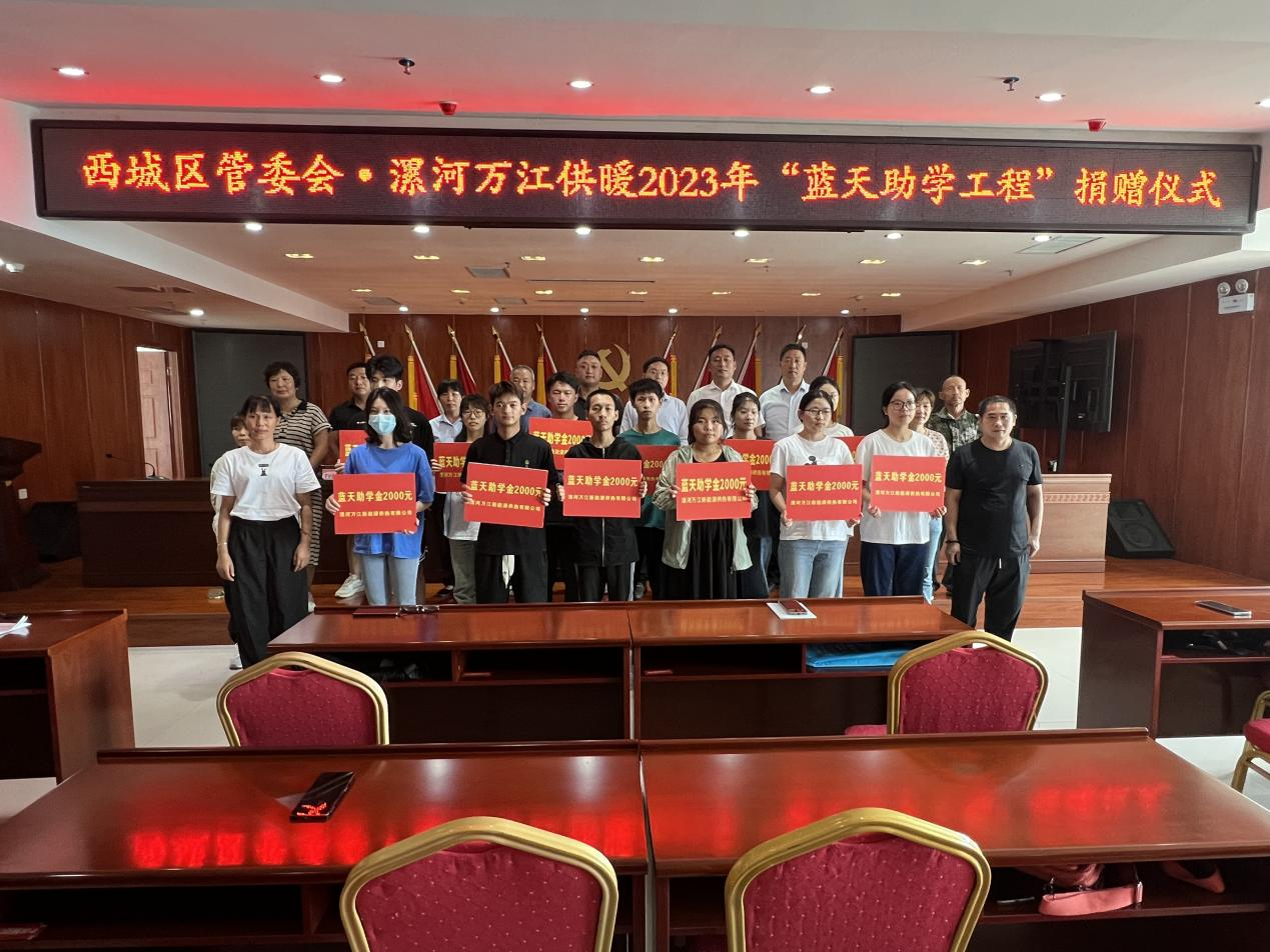 為助力困難家庭的優(yōu)秀學子在人生路上奮力逐夢,實現(xiàn)人生價值,8月30日上午,漯河市西城區(qū)管委會、漯河萬江供暖聯(lián)合舉行2023年“藍天助學工程”捐贈儀式。本次活動由萬江新能董事長陳澤民專項基金出資,為15名受困大學生發(fā)放共計3萬元助學金。