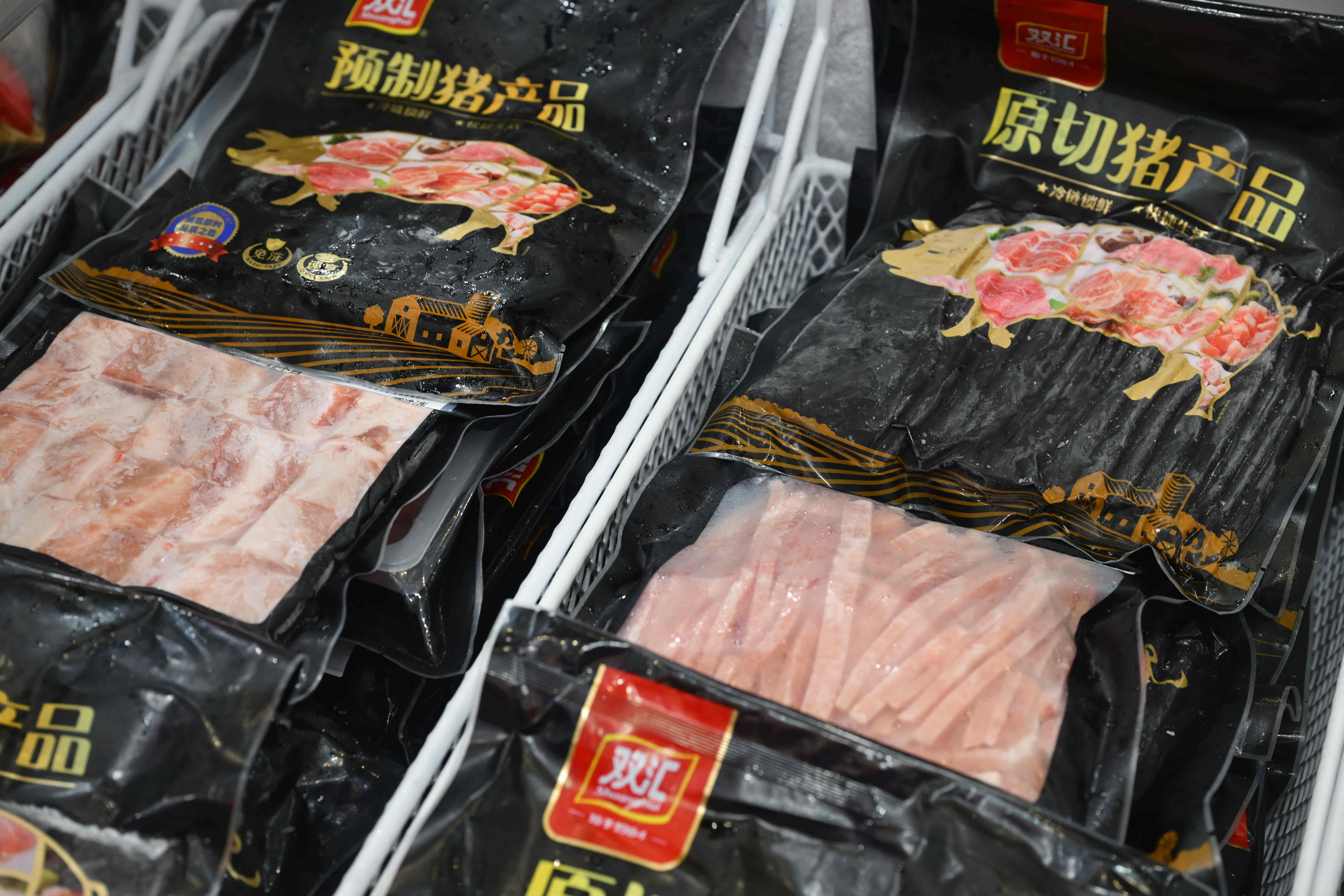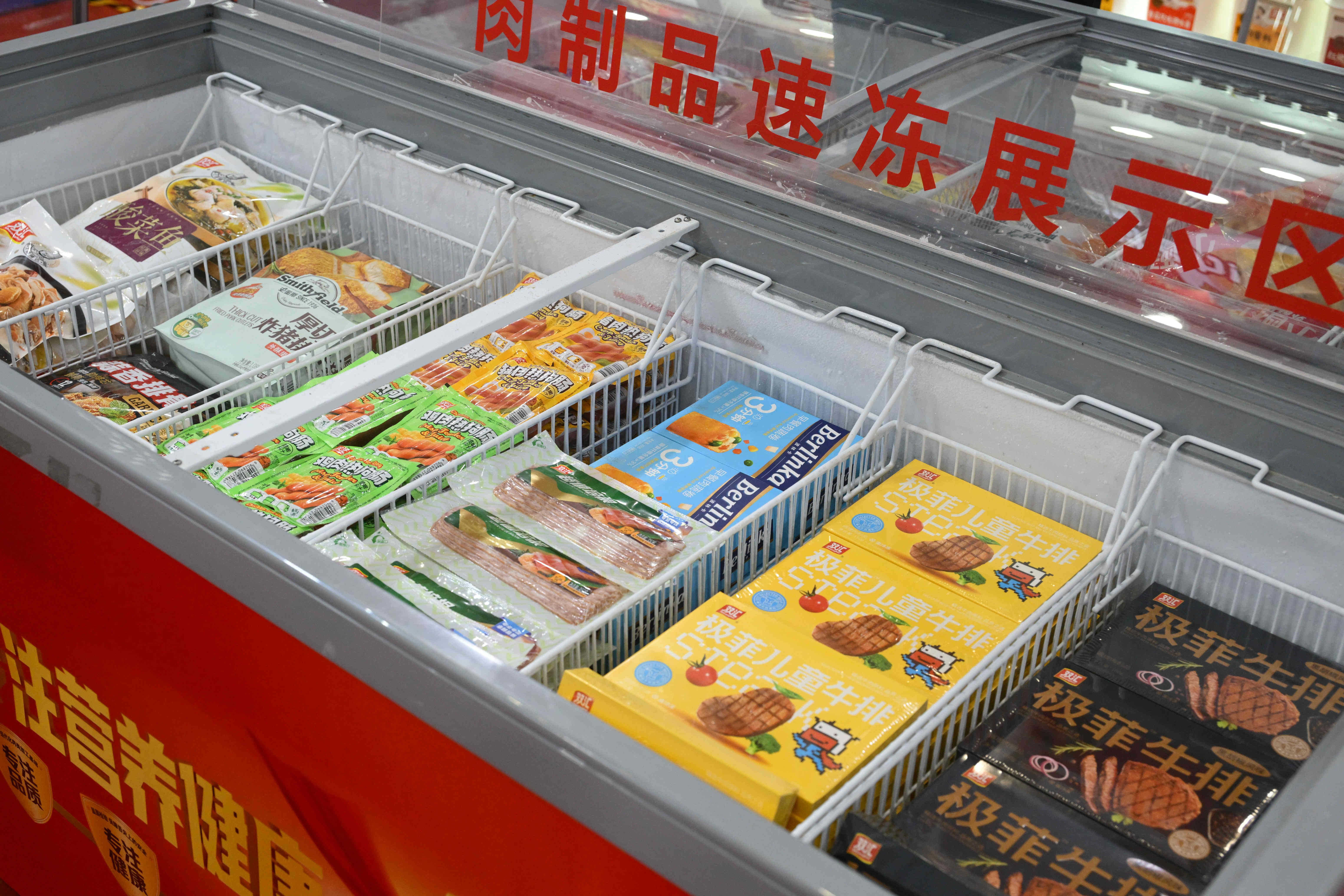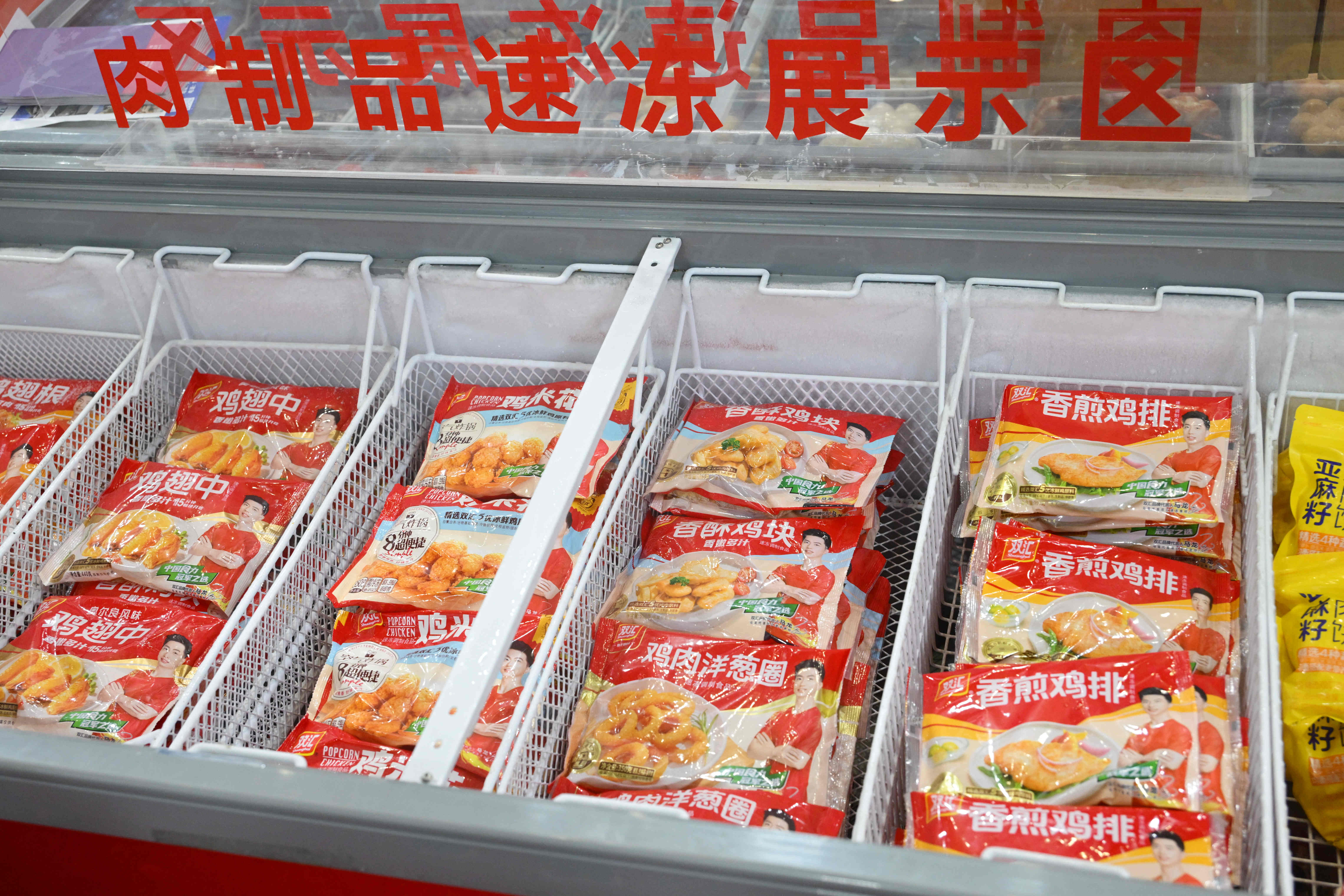 展柜內(nèi),Berlinka早餐肉蔬卷、極菲牛排、超值培根、炸豬排、亞麻籽雞肉餅、熱狗腸等特色產(chǎn)品,蒜香排骨、醬香肥腸、酸菜魚、豬肚雞等菜肴系列,香煎雞排、香酥雞塊、奧爾良風(fēng)味雞翅中、雞肉洋蔥圈等調(diào)理雞產(chǎn)品,丸子、肉卷、小酥肉、親親腸、芝士脆皮腸等火鍋食材,也充分展現(xiàn)了雙匯在產(chǎn)品創(chuàng)新方面的全新探索。