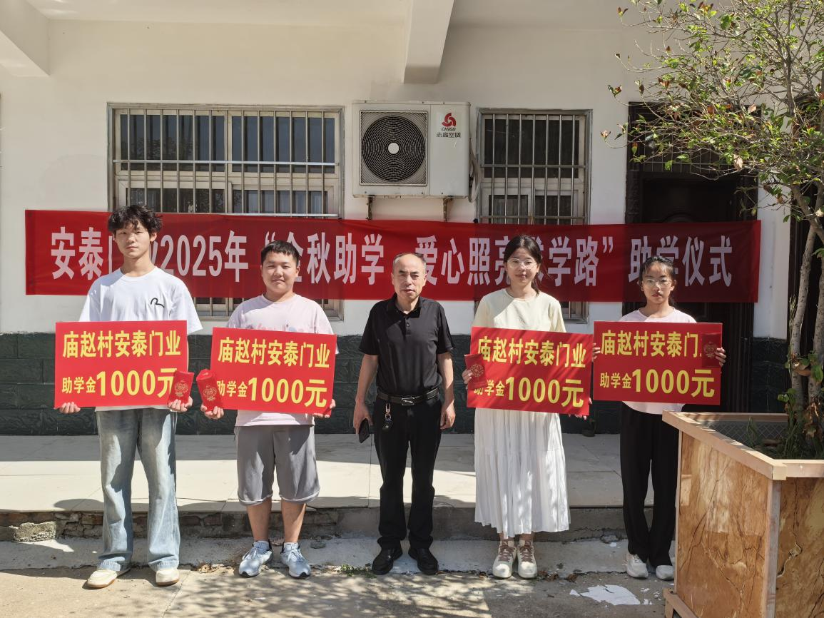 2025年8月22日上午,龍城鎮(zhèn)廟趙村洋溢著溫暖與希望的氛圍,愛心企業(yè)安泰門業(yè)2025年“金秋助學(xué)·愛心照亮求學(xué)路”助學(xué)儀式在這里隆重舉行,為村內(nèi)4名即將踏入大學(xué)校門的優(yōu)秀學(xué)子送去每人1000元助學(xué)金,以實(shí)際行動(dòng)履行企業(yè)社會責(zé)任,鼓勵(lì)村里的優(yōu)秀學(xué)子努力奮進(jìn),幫助他們更好地開啟大學(xué)生活。