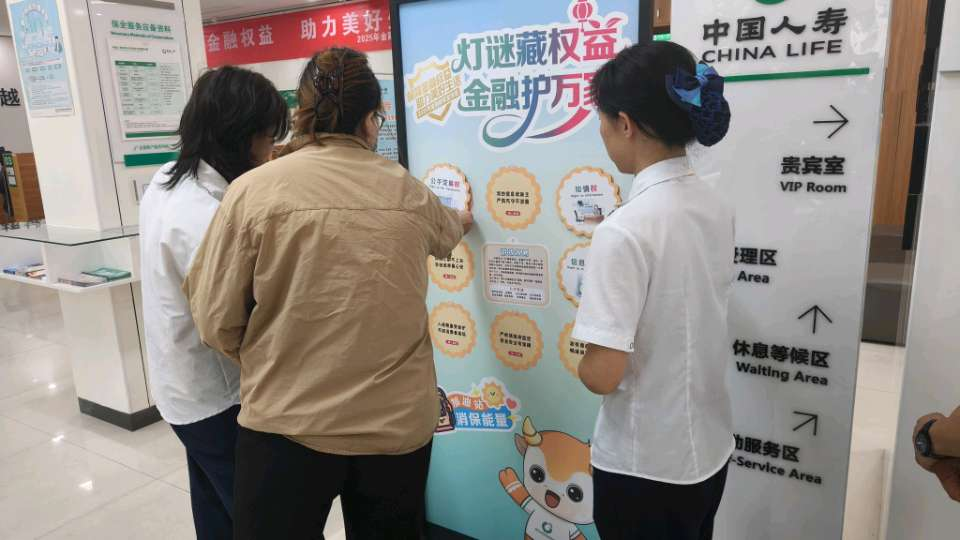 為積極響應(yīng)監(jiān)管部門的號召,切實(shí)提升社會公眾金融素養(yǎng),守護(hù)金融消費(fèi)者合法權(quán)益,在2025年9月15日至21日金融教育宣傳周期間,中國人壽壽險(xiǎn)漯河分公司在黃河路柜面消保教育宣傳基地設(shè)置“消保能量加油站”宣傳專區(qū),開展“燈謎藏權(quán)益,金融護(hù)萬家”活動。