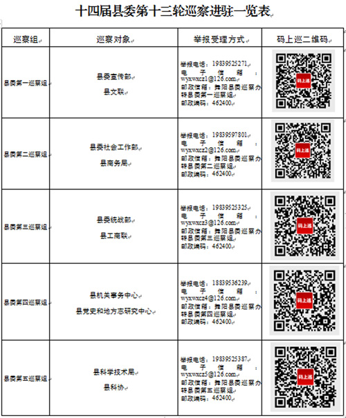 本輪巡察40天左右。為方便廣大干部群眾反映情況,縣委巡察組開設(shè)“碼上巡”二維碼、電子信箱、征求意見箱、來訪手機(jī)等信訪渠道。巡察組受理信訪時間截至2025年9月19日下午18時。巡察期間,縣委巡察組將嚴(yán)格執(zhí)行“十不準(zhǔn)”“四個絕不允許”等規(guī)定,主動接受被巡察對象和社會各界監(jiān)督。