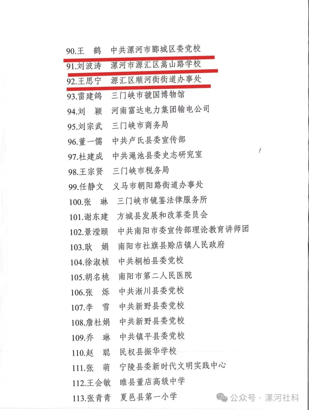 2024年社科普及志愿服務活動表現(xiàn)突出百姓宣講員(9名):毛志凌(中共漯河市委黨校);謝云鋒(漯河市第二實驗小學);許新霞(漯河市政協(xié));趙軍濤(臨潁縣城關街道老城社區(qū));韓文明(中共漯河市委宣傳部);朱菲輝(漯河市許慎文化研究保護中心);王鶴(中共漯河市郾城區(qū)委黨校);劉波濤(漯河市源匯區(qū)嵩山路學校);王思寧(源匯區(qū)順河街街道辦事處)