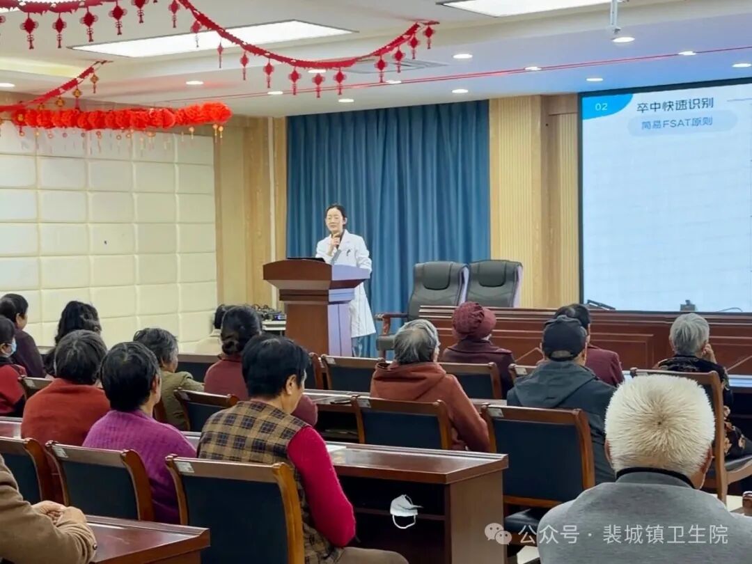 為了提高轄區(qū)內(nèi)老年人對(duì)腦卒中的認(rèn)識(shí)和預(yù)防能力,增強(qiáng)健康管理意識(shí)與自我防護(hù)能力。2025年10月16日下午,裴城鎮(zhèn)衛(wèi)生院組織科普宣講團(tuán)開展世界卒中日健康教育知識(shí)講座活動(dòng)。