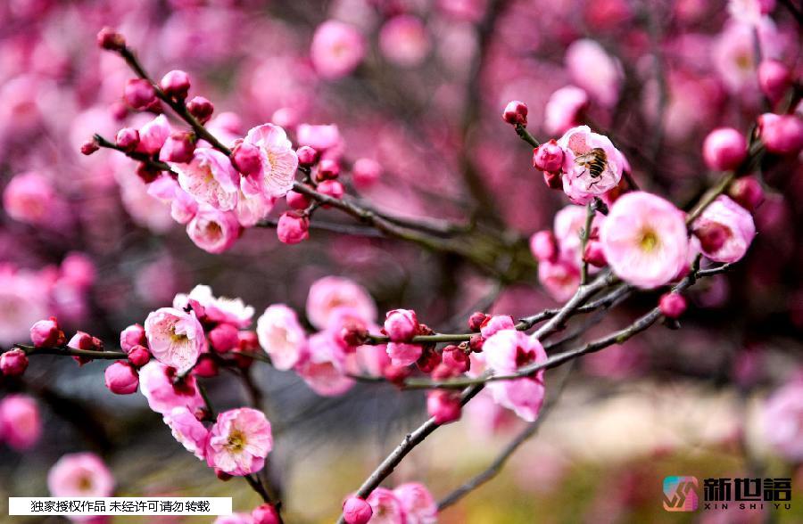 近日,隨著氣溫回升,地處長(zhǎng)江南岸的安徽銅陵銅官區(qū)大街小巷、公園廣場(chǎng),一棵棵紅梅在春風(fēng)中綻放,散發(fā)著陣陣幽香,吸引著蜜蜂前來(lái)花間采蜜。