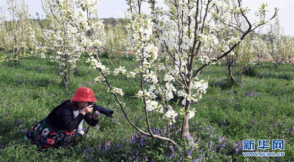 3月22日,云南省曲靖市沾益區(qū)炎方鄉(xiāng)炎方村的農(nóng)民在果園里作業(yè)。 春季里,云南省曲靖市沾益區(qū)鄉(xiāng)村果園里的桃花梨花競相綻放,景色秀美,吸引游人前來觀光。 新華社記者 楊宗友 攝
