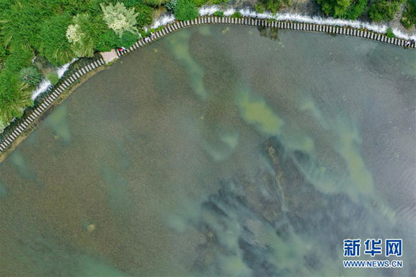 6月9日,游人在貴陽市天河潭旅游度假區(qū)游玩(無人機(jī)照片)。夏日的貴陽市天河潭旅游度假區(qū)草木蒼翠,風(fēng)景如畫,吸引游客來此休閑游玩。 新華社記者 歐東衢 攝