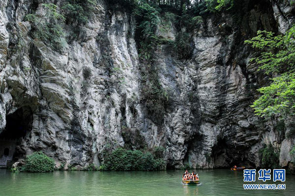6月9日,游人在貴陽市天河潭旅游度假區(qū)游玩。 夏日的貴陽市天河潭旅游度假區(qū)草木蒼翠,風(fēng)景如畫,吸引游客來此休閑游玩。 新華社記者 歐東衢 攝