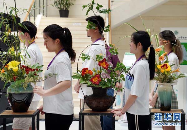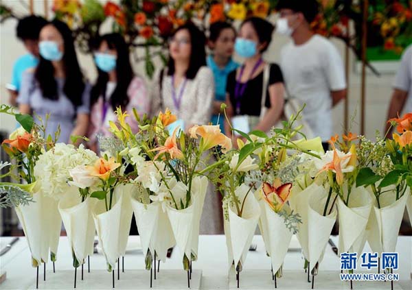 6月13日,上海應(yīng)用技術(shù)大學(xué)的學(xué)生們設(shè)計創(chuàng)作的萱草花藝作品即將在開幕式現(xiàn)場亮相。 當(dāng)日,“2020中國(上海)萱草文化節(jié)”在上海應(yīng)用技術(shù)大學(xué)開幕,校園里數(shù)百個品種的萱草花競相綻放,萱草科研推廣、萱草文化交流等多項活動同時舉行。 新華社記者劉穎攝