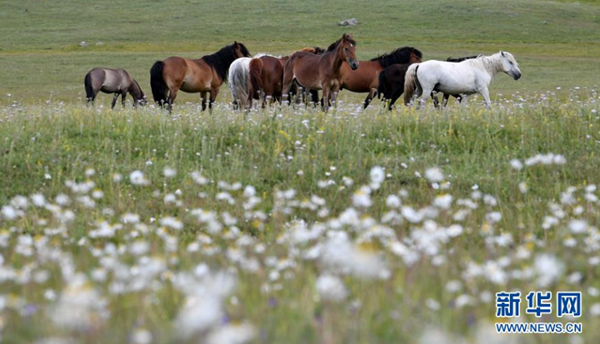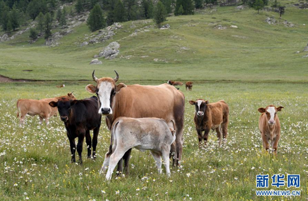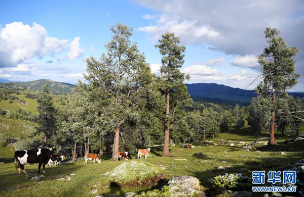 這是6月21日拍攝的新疆阿勒泰地區(qū)哈巴河縣的牧場風(fēng)光。 夏日時(shí)節(jié),新疆哈巴河縣薩爾布拉克鎮(zhèn)高山牧場水草豐茂,風(fēng)景如畫。 新華社記者 沙達(dá)提 攝