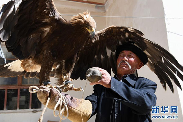 6月29日,庫爾馬西·胡特曼撫摸他的獵鷹。 馴鷹習俗是柯爾克孜族長期以來形成的一種生產(chǎn)生活習俗,新疆克孜勒蘇柯爾克孜自治州阿合奇縣牙朗奇村的庫爾馬西·胡特曼今年69歲,是國家級非物質(zhì)文化遺產(chǎn)代表性項目柯爾克孜族馴鷹習俗的代表性傳承人。 庫爾馬西的家族世代馴鷹。從小與鷹相處,庫爾馬西成為名副其實的“鷹語者”。要將兇猛的野鷹訓練成聽從指揮的獵鷹絕非易事,需要馴鷹人投入大量心血,精心喂養(yǎng)。一代代馴鷹人之間口耳相傳,形成了一套涵蓋取鷹、熬鷹、馴鷹、放鷹等方面的絕學。“鷹是有靈性的動物,懂得感恩,會通過抖動羽毛來表示喜悅,表示對你的愛。”庫爾馬西說,“鷹也會因為我的夸獎給我信號,通過叫聲、身體語言告訴我,它理解了我的話。” 在柯爾克孜族的馴鷹傳統(tǒng)里,獵鷹在為主人“服役”一到五年后,將重返天空,獲得自由。隨著野生動物保護相關(guān)法規(guī)的出臺,當?shù)匾呀柜Z鷹人取鷹捕鷹,目前已馴養(yǎng)的獵鷹放飛后恐將無以為繼?;蛟S,庫爾馬西這一代人,將成為最后的“鷹語者”。 新華社記者 宋彥樺 攝