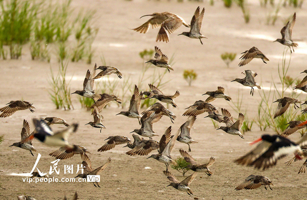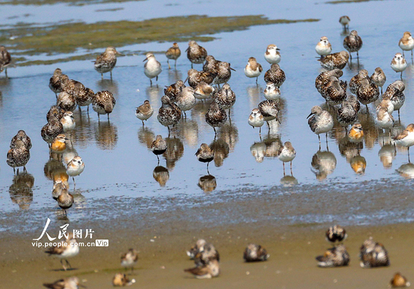 近年來,世界自然遺產(chǎn)地江蘇省鹽城市東臺(tái)條子泥濕地,不斷加大濕地修復(fù)、退漁還濕力度,為遷徙的水鳥提供更多的棲息覓食場所。近日,大批白腰杓鷸、大濱鷸、斑尾塍鷸、黑尾塍鷸、半蹼鷸、黑腹濱鷸、紅頸濱鷸、環(huán)頸鴴、蒙古沙鴴等鴴鷸類南遷候鳥在修復(fù)的高潮位棲息地停歇,取得了良好的生態(tài)效益。孫家錄/人民圖片