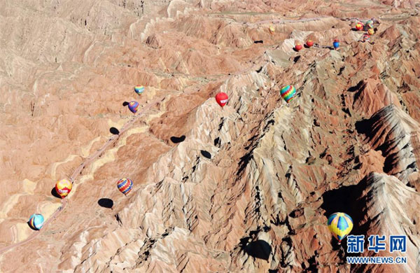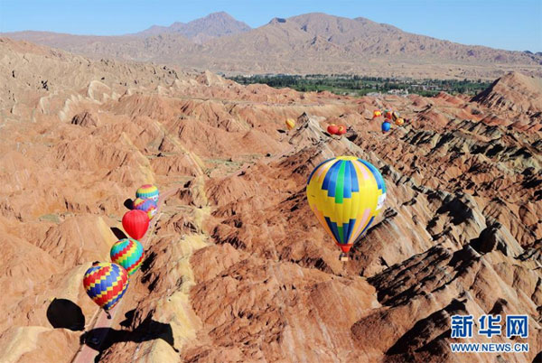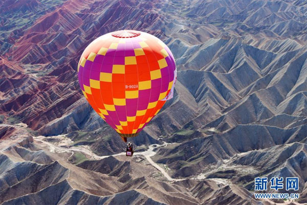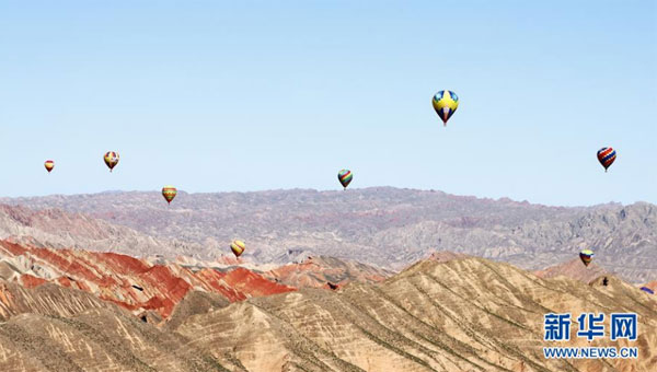 甘肅張掖:七彩丹霞升起熱氣球
