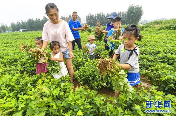 8月6日,小朋友在河北省永清縣后奕鎮(zhèn)一處休閑樂園里采摘花生。 近年來,河北省永清縣采取“農(nóng)業(yè)+文化+旅游”方式,整合農(nóng)業(yè)、人文、生態(tài)等資源優(yōu)勢,通過召開旅發(fā)大會等形式,打造休閑游、采摘游、親子游等特色旅游活動,積極推動鄉(xiāng)村旅游發(fā)展,促進當?shù)厝罕娋蜆I(yè)增收,助力鄉(xiāng)村振興。 新華社記者 李曉果 攝