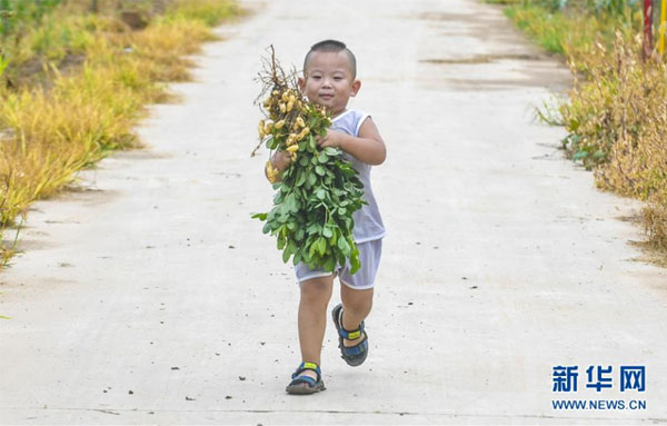 8月6日,小朋友在河北省永清縣后奕鎮(zhèn)一處休閑樂園里運送采摘的花生。 近年來,河北省永清縣采取“農(nóng)業(yè)+文化+旅游”方式,整合農(nóng)業(yè)、人文、生態(tài)等資源優(yōu)勢,通過召開旅發(fā)大會等形式,打造休閑游、采摘游、親子游等特色旅游活動,積極推動鄉(xiāng)村旅游發(fā)展,促進當?shù)厝罕娋蜆I(yè)增收,助力鄉(xiāng)村振興。 新華社記者 李曉果 攝
