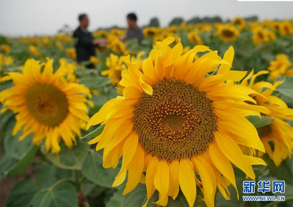 8月12日,在尚義縣三工地鎮(zhèn)有德元村,農(nóng)民在田間管護(hù)旱作油葵。 近年來,地處壩上地區(qū)的河北省尚義縣大力實(shí)施地下水超采綜合治理,積極探索旱作雨養(yǎng)種植技術(shù),發(fā)展馬鈴薯、莜麥和油葵等旱地農(nóng)作物,促進(jìn)生態(tài)環(huán)境恢復(fù)。據(jù)介紹,該縣2019年以來,先后關(guān)停灌溉用井1200余眼,旱地改草23萬畝,水澆地改旱地11萬畝。 新華社記者 楊世堯 攝