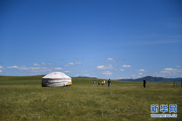 游客在克什克騰旗貢格爾草原上游玩(8月11日攝)。 克什克騰旗位于內(nèi)蒙古自治區(qū)赤峰市西北部,境內(nèi)的湖泊、河流、草原、森林等自然景觀,讓人們流連忘返。 新華社記者 劉磊 攝
