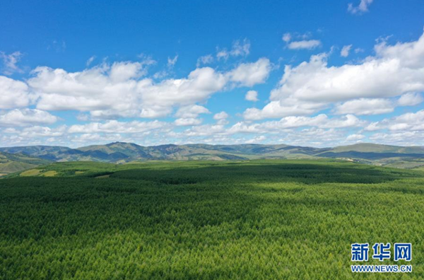 這是8月13日拍攝的位于克什克騰旗的樺木溝國家森林公園風(fēng)景(無人機(jī)照片)。 克什克騰旗位于內(nèi)蒙古自治區(qū)赤峰市西北部,境內(nèi)的湖泊、河流、草原、森林等自然景觀,讓人們流連忘返。 新華社記者 徐欽 攝