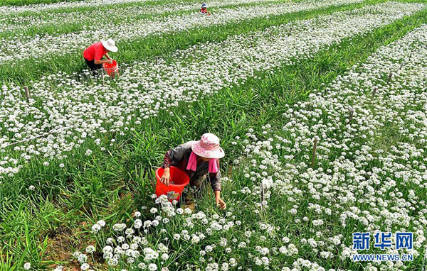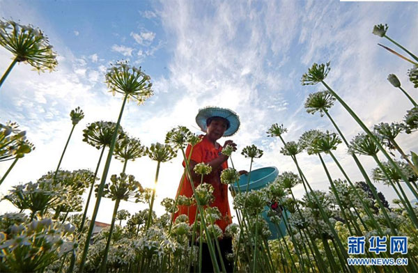 8月29日,山東省淄博市沂源縣悅莊鎮(zhèn)黃山子村的農(nóng)民在田間采摘韭菜花。 初秋時(shí)節(jié),山東省淄博市沂源縣農(nóng)民種植的萬畝韭菜迎來盛花期,當(dāng)?shù)剞r(nóng)民加緊采摘韭菜花銷往各地。近年來,無公害韭菜種植成為當(dāng)?shù)剞r(nóng)民增收致富的特色產(chǎn)業(yè)之一。 新華社發(fā)(趙東山 攝)