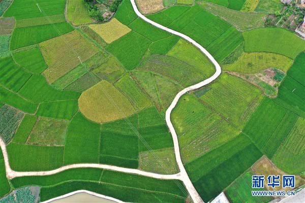 廣西平樂(lè)縣張家鎮(zhèn)在穩(wěn)定水稻播種面積的同時(shí),積極推廣優(yōu)質(zhì)高產(chǎn)水稻新品種。時(shí)下,正值該鎮(zhèn)晚稻抽穗揚(yáng)花時(shí)節(jié),田園一派美麗景象。 新華社記者 周華 攝