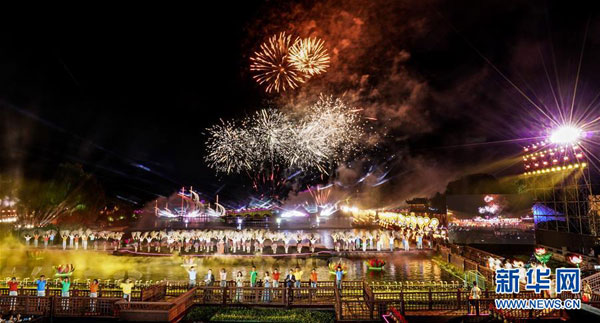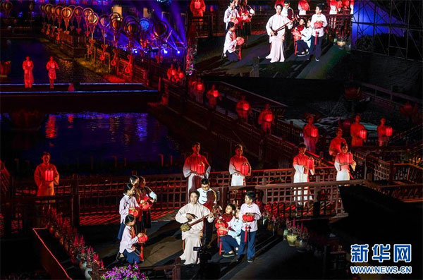 9月28日,演員在開燈儀式上表演歌舞節(jié)目。 當(dāng)日,2020海峽兩岸(昆山)中秋燈會在江蘇昆山開幕,為期一個月。燈會設(shè)置的水鄉(xiāng)周莊燈區(qū)以水鄉(xiāng)、古鎮(zhèn)、田園江南為依托,將傳統(tǒng)彩燈與現(xiàn)代光影藝術(shù)相融合,打造“水韻芳華”夜周莊。 新華社記者 楊磊 攝