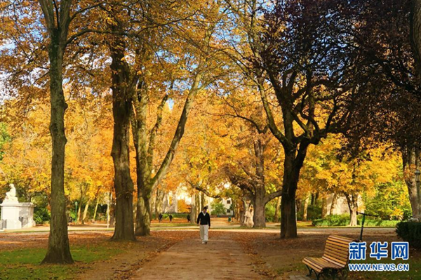 10月26日,一名男子在比利時(shí)布魯塞爾的五十周年紀(jì)念公園散步。 布魯塞爾秋意正濃,景色怡人。 新華社記者鄭煥松攝