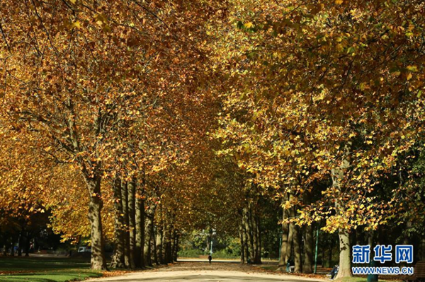 10月26日,人們?cè)诒壤麜r(shí)布魯塞爾的五十周年紀(jì)念公園騎行。 布魯塞爾秋意正濃,景色怡人。 新華社記者鄭煥松攝