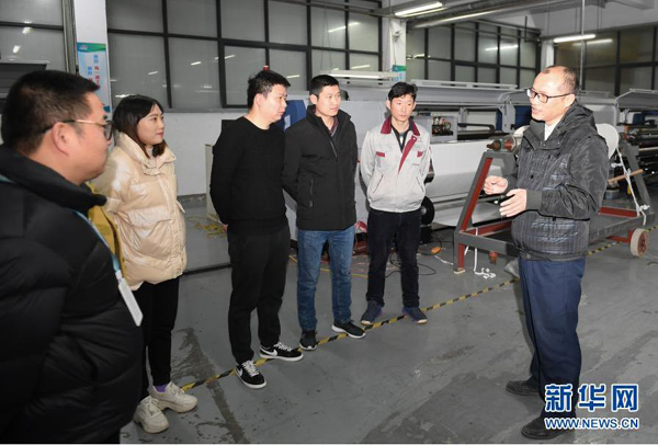 1月22日,環(huán)渚街道司法工作人員(右一)走訪一家企業(yè),對務工人員進行維權(quán)指導和現(xiàn)場答問。新華社記者 翁忻旸 攝