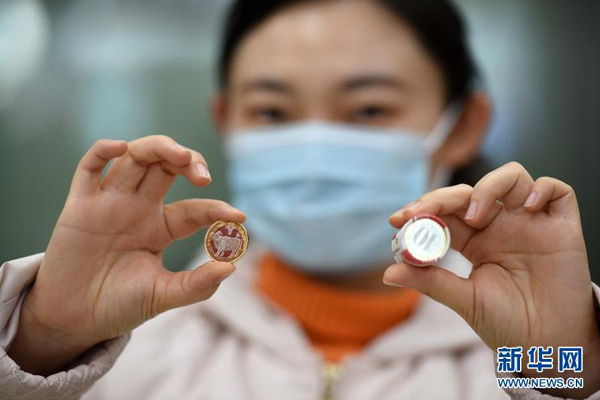 1月29日在杭州拍攝的紀(jì)念幣。當(dāng)日,中國(guó)人民銀行發(fā)行的2021年賀歲普通紀(jì)念幣開(kāi)始兌換。