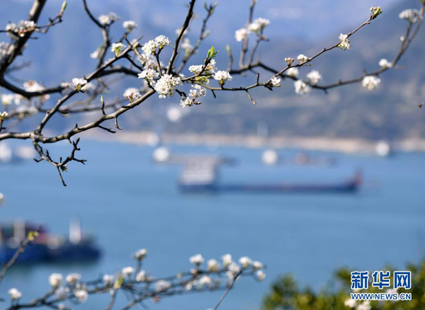隨著氣溫回升,三峽庫(kù)區(qū)湖北省秭歸縣沿江兩岸春花爛漫,景色如畫。