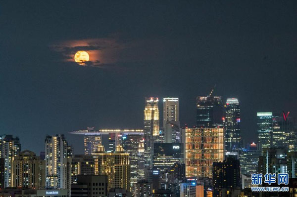 4月27日,“超級月亮”出現(xiàn)在新加坡城市的天空。
