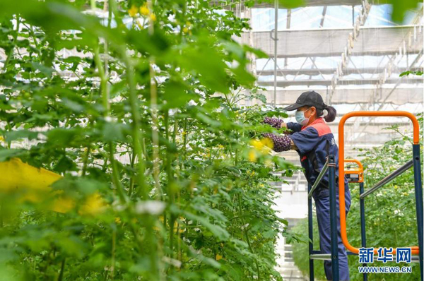 在吉林省吉林市永吉縣卓遠(yuǎn)農(nóng)業(yè)種植專業(yè)合作社的“植物工廠”,農(nóng)民趙玉霞在修整作物(4月14日攝)。
