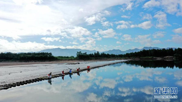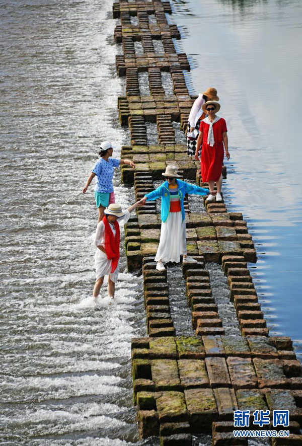 7月6日,市民在浙江省臺州市仙居縣永安溪白塔鎮(zhèn)段游玩。