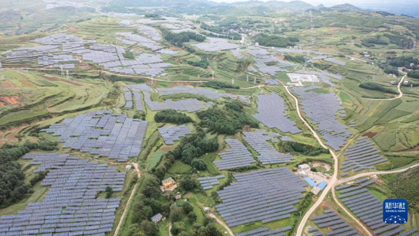 貴州金元公司仙水窩光伏電站一隅(8月24日攝,無人機照片)。