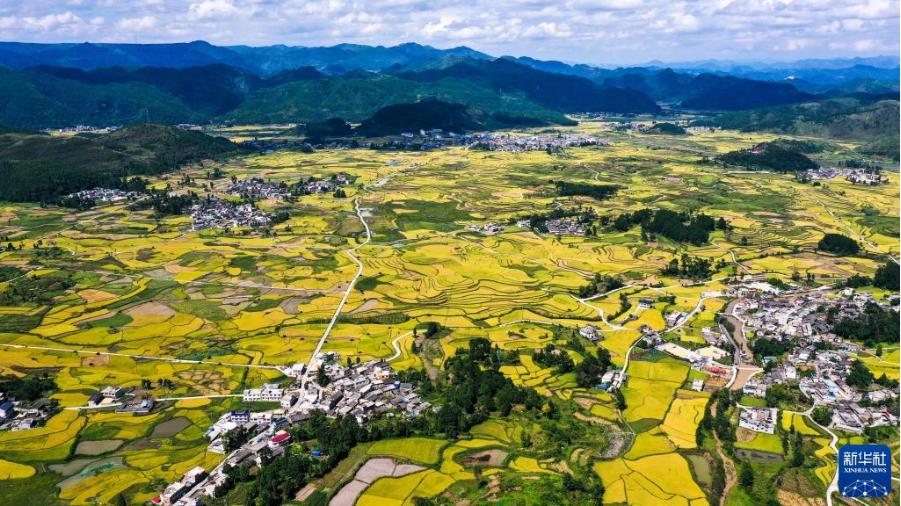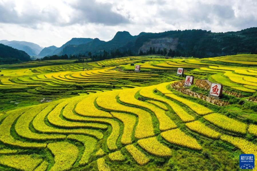 貴州省龍里縣灣灘河鎮(zhèn)羊場(chǎng)社區(qū)的稻田(9月15日攝,無(wú)人機(jī)照片)。