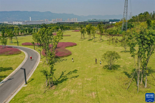 10月2日,人們?cè)谥貞c市兩江新區(qū)粉黛山公園游玩(無(wú)人機(jī)照片)。